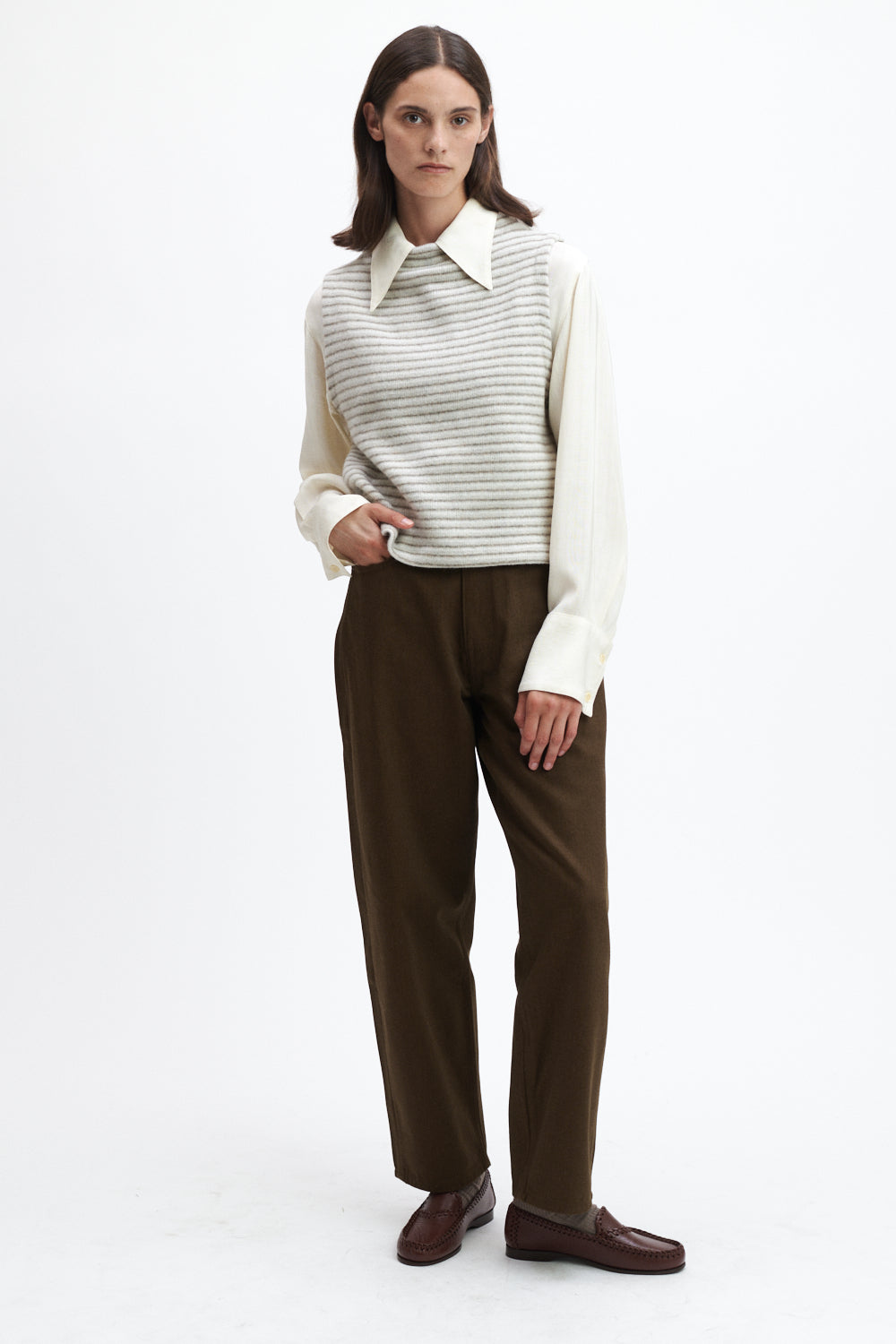 When comfort and design join hands, Karla is born. Our sleeveless sweater with a boat neckline combines noble simplicity with the soft feel of high-quality natural fibers.